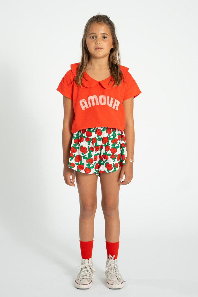 Piupiuchick Frottee-T-Shirt mit Peter-Pan-Kragen. Das Shirt hat einen Aufdruck mit den Buchstaben „AMOUR“ auf der Vorderseite.