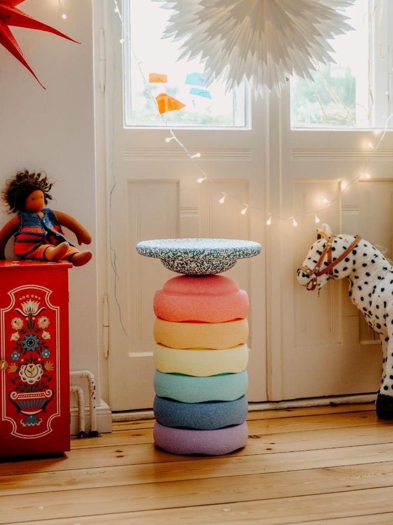 Deze set bestaat uit 6 stenen plus een balance board. Hierdoor is deze set bijzonder geschikt voor evenwichtsspelletjes en evenwichtsoefeningen. Voor meer beweging, spel en fantasie in het dagelijkse leven van kinderen.