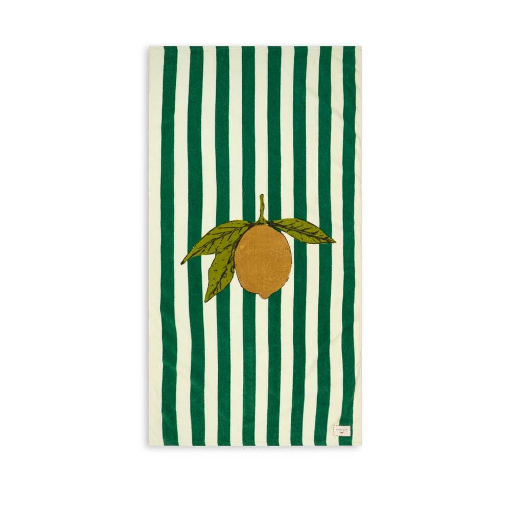 Groot strandlaken in de print Antique stripe van Konges Sløjd. Deze strandhanddoek met schattige citroen is gemaakt van zacht katoen dat zowel absorberend als comfortabel is.