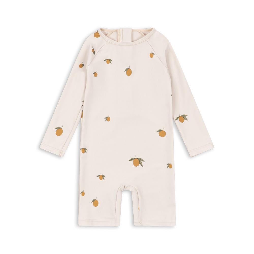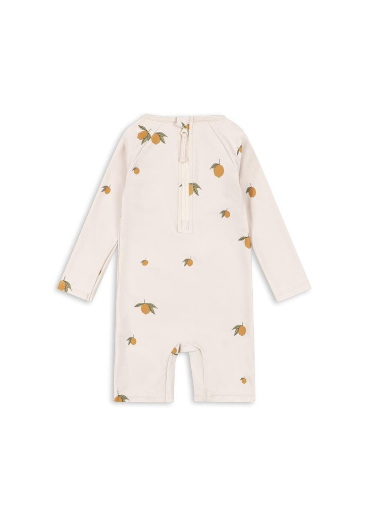 Aster swimsuit in the Mon grand citron print by Konges Sløjd. This long-sleeved swimsuit protects against the sun's UV rays with the highest ultraviolet protection factor, SPF 50+.