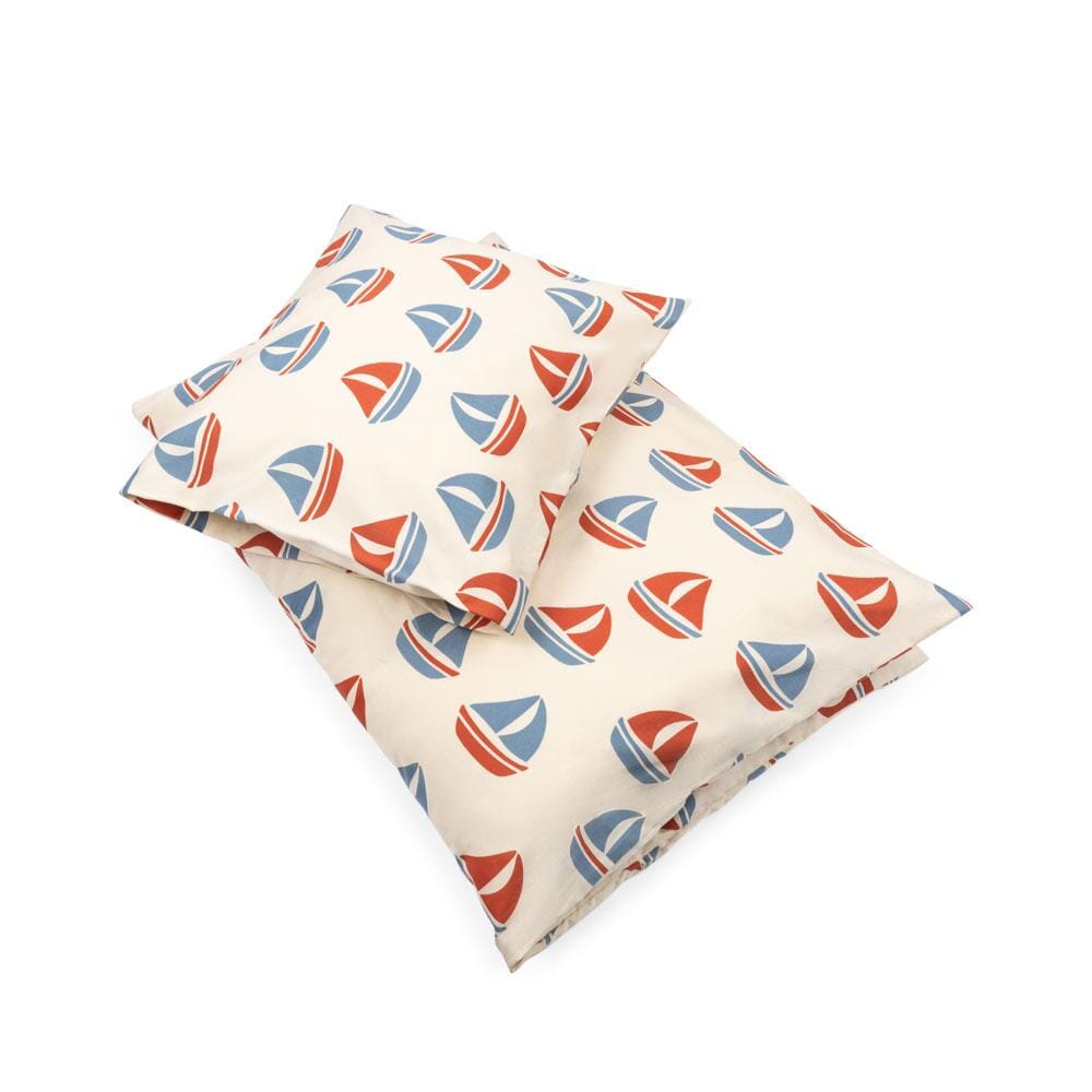 Set met bijpassend dekbedovertrek en kussensloop in de print Ahoy van Konges Sløjd. Sluit met een rits.