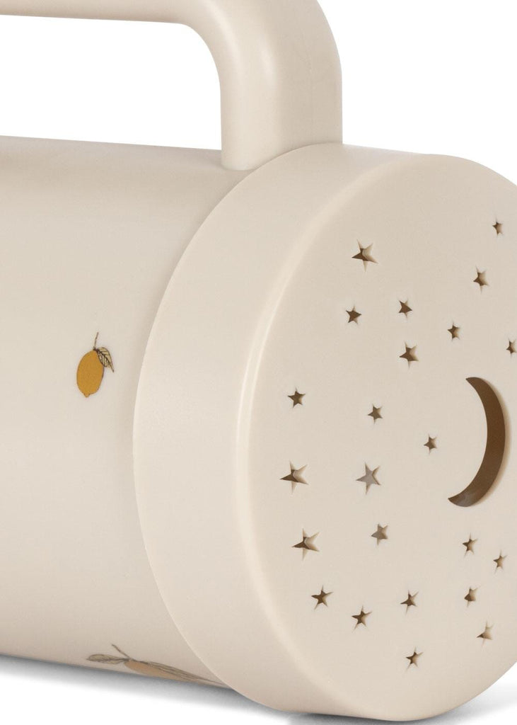Grote zaklamp in de print Lemon van Konges Sløjd. Deze magische zaklamp heeft licht dat van kleur verandert. Bevestig het deksel met uitgesneden vormen aan de voorkant van de zaklamp om leuke beelden op de muur te projecteren!