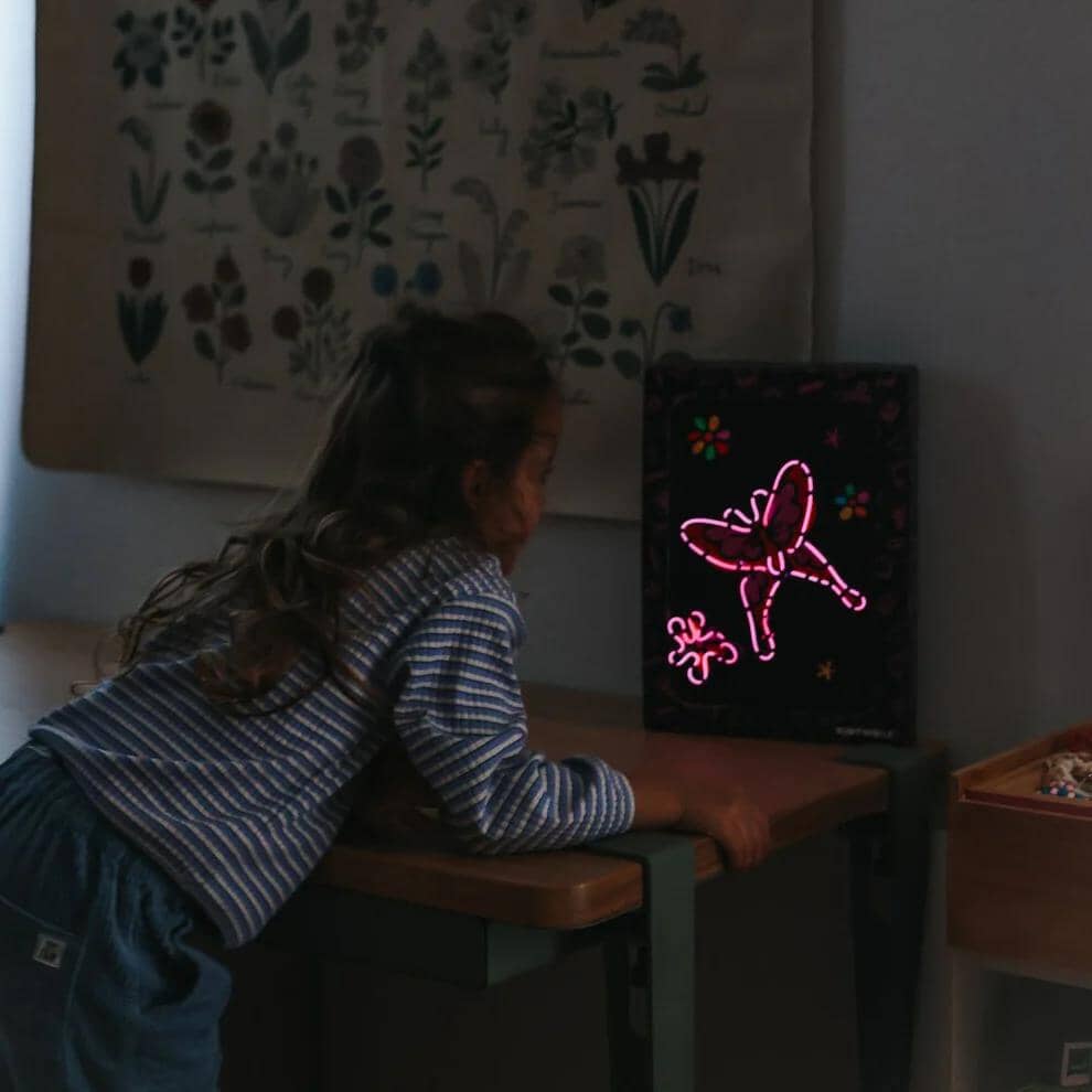 Kidyneon kit for luminous artwork in the Once upon a time version from Kidywolf. KIDYNEON adds a new dimension to creative hobbies by adding a touch of magical lighting! Using neon-coloured wire attached to a pre-perforated board, children can create beautiful, original works of art that they can proudly display. A craft activity that stimulates creativity while developing fine motor skills and concentration. No screen, 100% engaging!