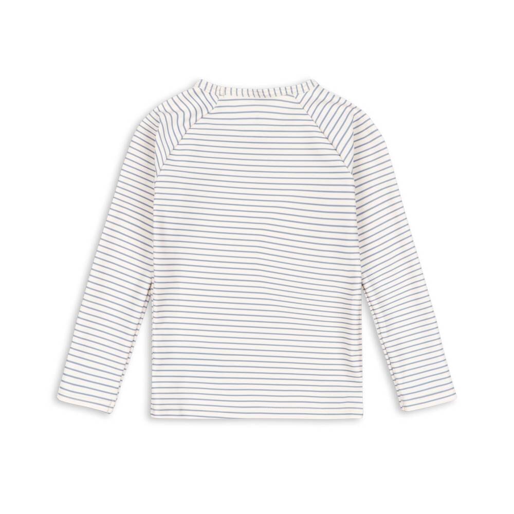 Aster zwem-T-shirt in de print Stripe bluie van Konges Sløjd. Deze top met lange mouwen, beschermt tegen de UV-stralen van de zon met de hoogste ultravioletbeschermingsfactor, SPF 50+.
