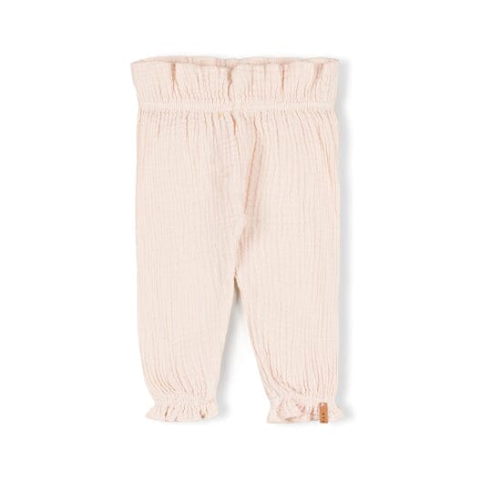 Lis Pants in de kleur Snow van Nixnut. Dit zomerbroekje voor de kleintjes is gemaakt van zacht mousseline. Combineer met de Lis Top voor een leuke co-ord set. Het leren Nixnut-label is aan de onderkant bevestigd. Het broekje heeft een elastische tailleband en lieve ruffles aan de broekspijpjes.