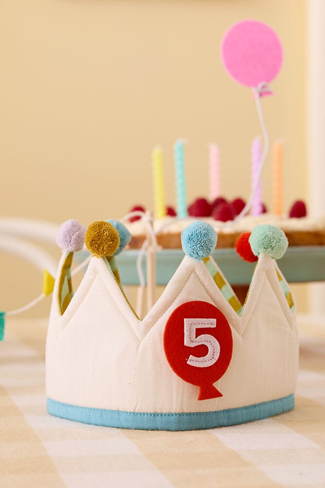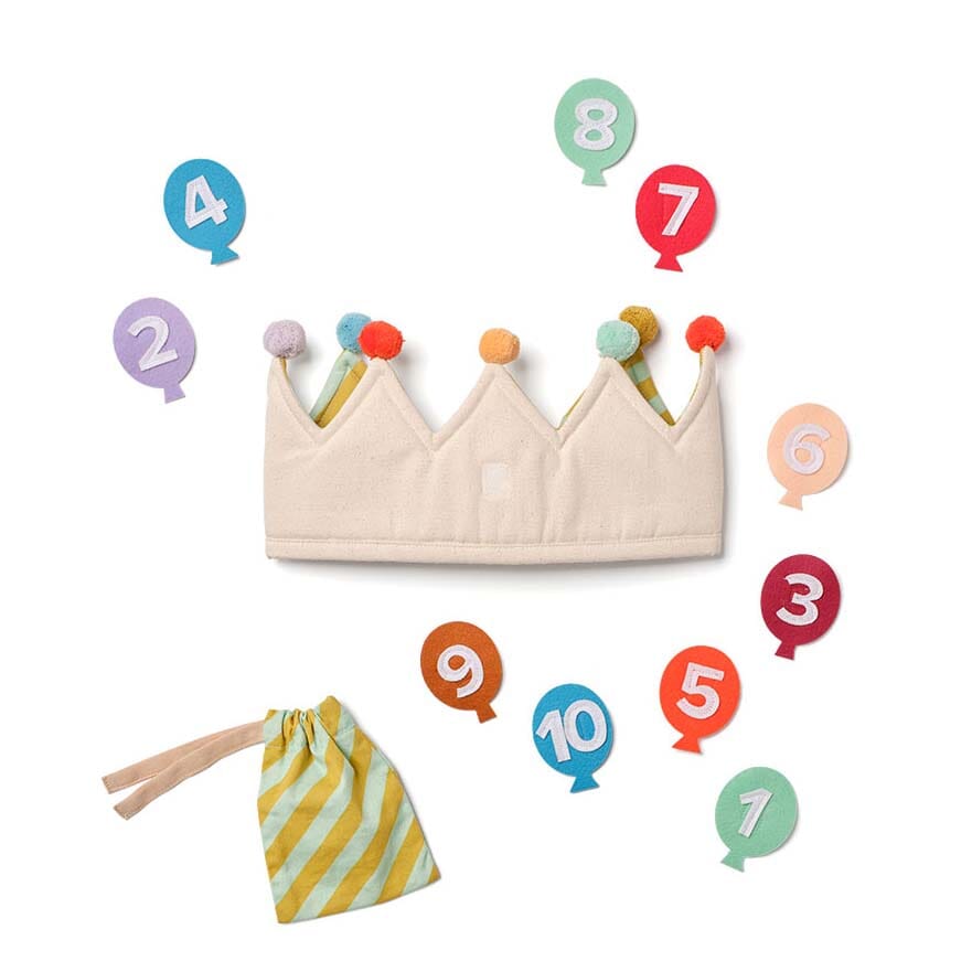 Verjaardagskroon van Kid's Concept. Een kroon die perfect past bij het jarige kind — en het jaar dat ze vieren. Deze feestelijke kroon heeft aan de voorkant ruimte om cijfers 1-10 met klittenband te bevestigen, zodat je hem elk jaar gemakkelijk kunt aanpassen.