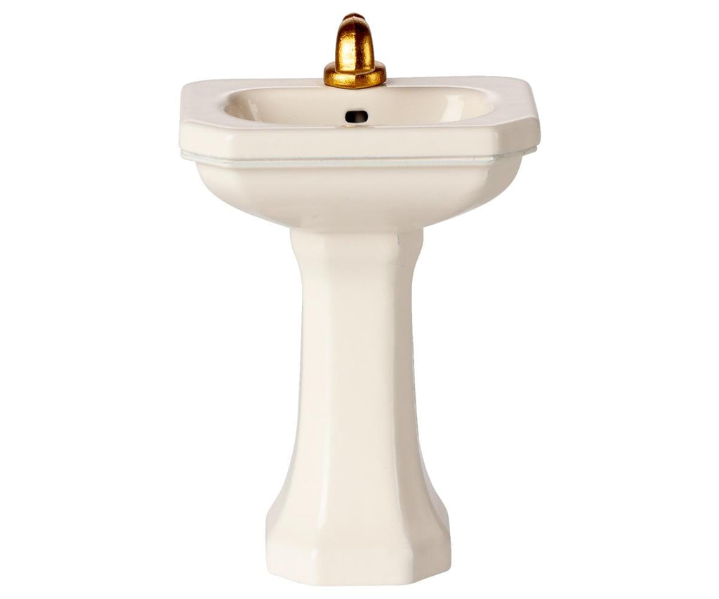 Lavabo voor muizen van Maileg. Deze kleine wastafel is op maat van de muizen kleine zus en kleine broer. Hij past perfect in de badkamer van het SuitCasa muizenhuis.